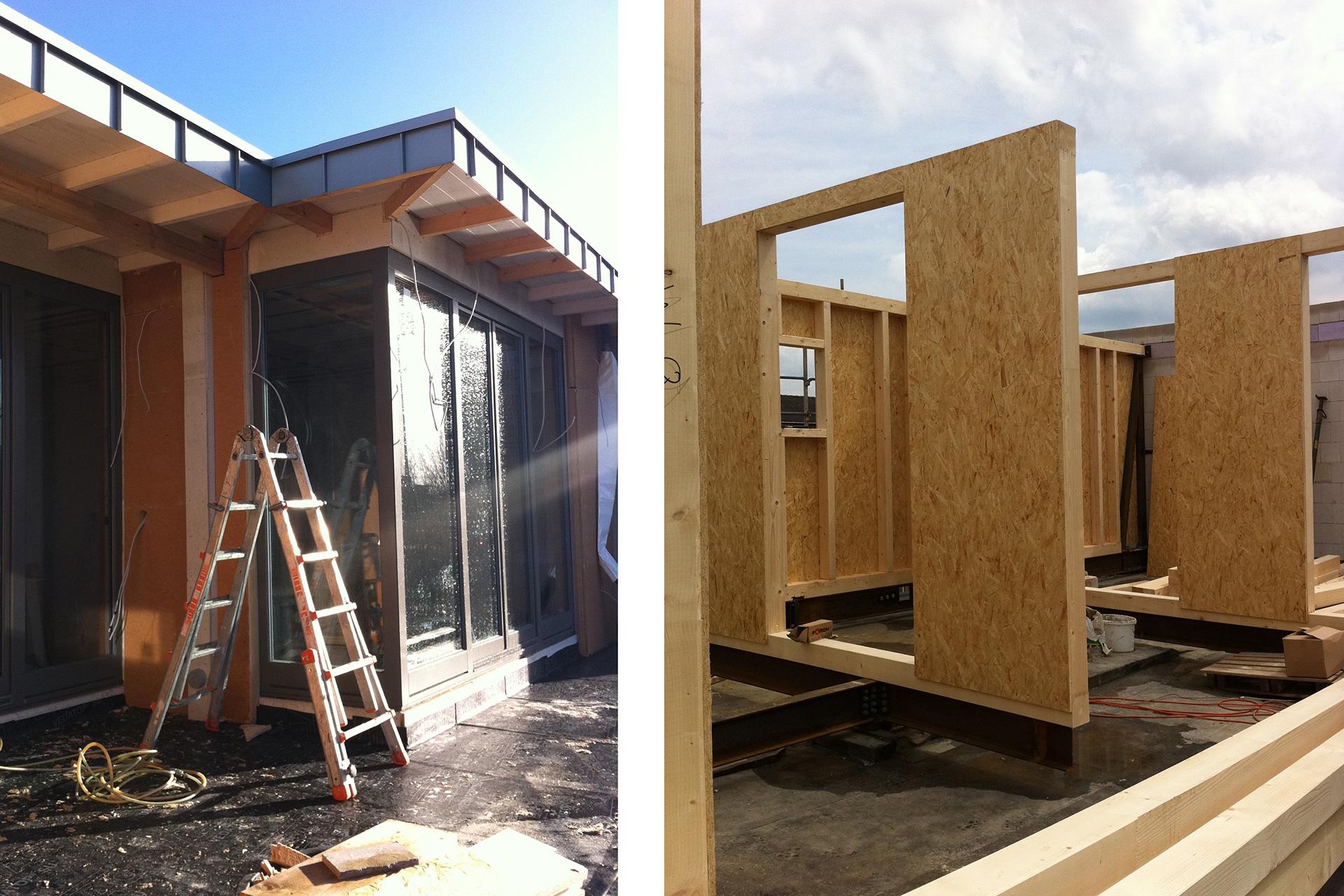 Aufstockung zur Wohnraumerweiterung in Form eines Staffelgeschosses in Holztafelbauweise (die Elemente wurden nach Entwurf vorgefertigt und vor Ort verbaut).