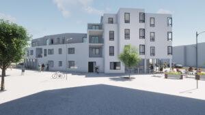 Es sollen 19 Wohneinheiten zwischen 25 und 75 m² sowie drei Gewerbeeinheiten entstehen.