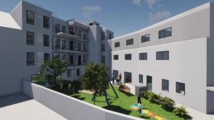 In die Gewerbeeinheiten sollen die Fahrschule der Bauherrschaft, eine Kita zur lokalen Versorgung und ein Eiscafé einziehen.